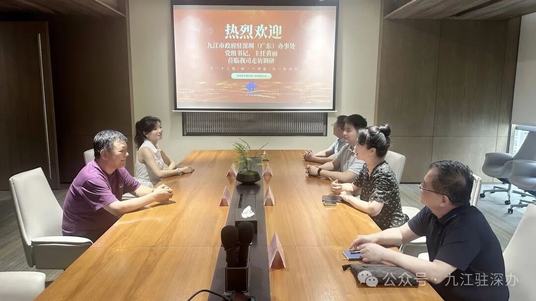 7月11日,九江市政府驻深圳(广东)办事处党组书记、主任黄丽一行前往深圳市宏建基础工程有限公司走访调研,并与董事长徐景洪座谈交流。